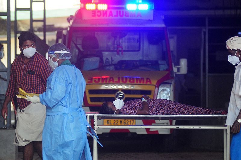 2023年9月,印度喀拉拉邦一家医院内,医护人员将一名出现尼帕病毒感染症状的病人转移到隔离病房。来源:央视新闻