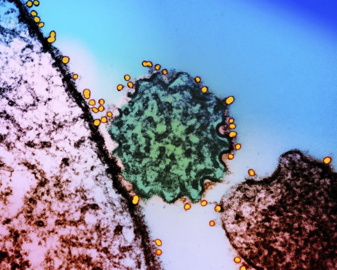 透射电子显微镜看尼帕病毒。来源:央视新闻